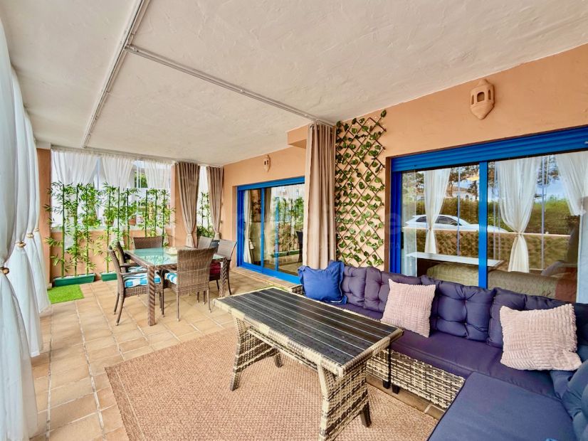 Elevated ground-floor apartment with terrace and open outlook, Manilva