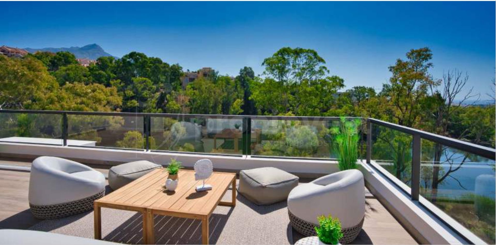 It has been designed so that all homes have breathtaking panoramic views from their generous terraces and spacious living rooms. The architecture in the common areas of Marbella Lake is inspired by the avant-garde aesthetic concepts of “Boho Chic” and “Country Chic”, combining natural materials and colors that are integrated into the landscape in a balanced way and favor a relaxed and evocative living environment.