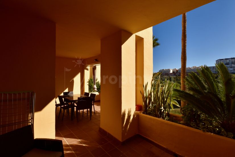 We present this exclusive elevated ground floor apartment, located in the prestigious Duquesa Village Urbanization.