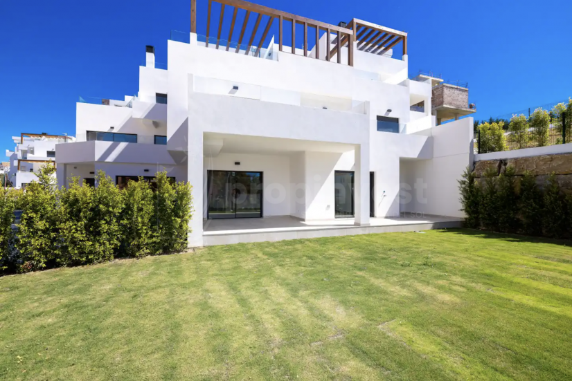 We present to you an apartment consisting of 2 bedrooms, 2 bathrooms, one of which is en-suite, and a kitchen designed with an open concept that flows into the living-dining room. The terrace is of a very good size to enjoy year-round on the Costa del Sol, with attention to detail, high-quality materials, energy-efficient housing, and abundant natural light. Additionally, it features a private garden of 54 m².