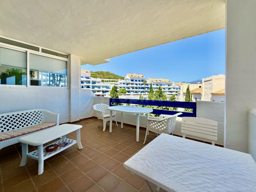 Step into comfort with this generously sized one-bedroom apartment on the fifth floor of the sought-after Duquesa Suites complex in Manilva.